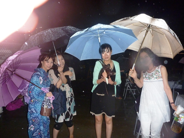 しかし、しかし、最後の花火が終了すると同時に、暗闇から雷鳴が轟き、一気に滝を打ったような雨が降り出してきた。